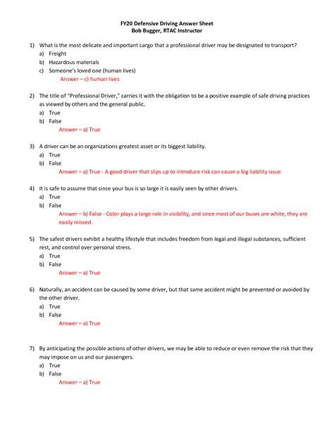 Read Defensive Driving Quiz Answers Reader