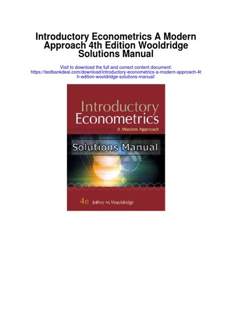Download Introductory Econometrics Wooldridge 4th Edition Solution Manual Reader online is a convenient and frugal way to read Introductory Econometrics Wooldridge 4th Edition Solution Manual you love right from the comfort of your own home. Yes, there sites where you can get Reader "for free" but the ones listed below are clean from viruses and completely legal to use.